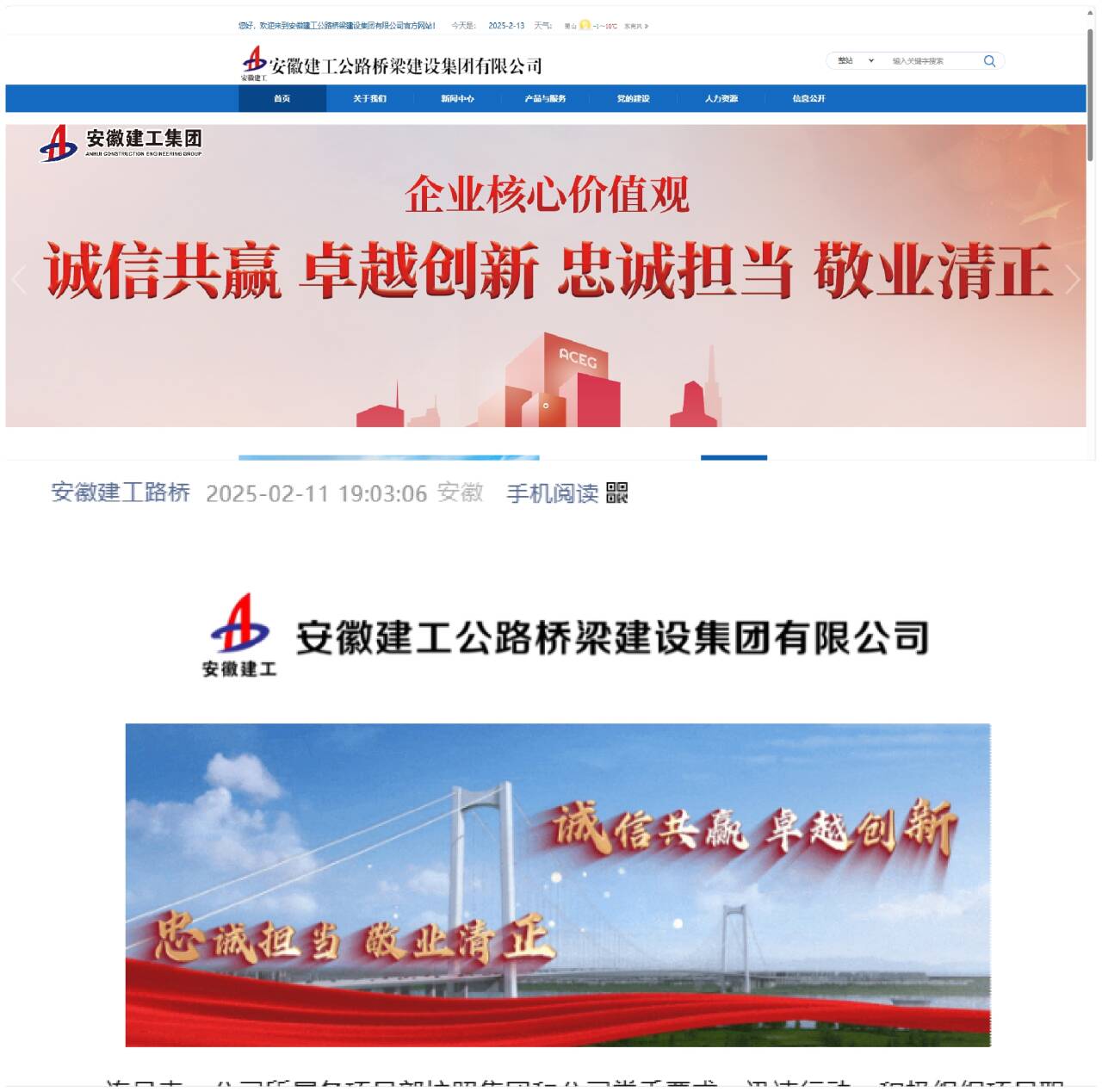 建工路橋黨委高度重視集團核心價值觀學習宣傳貫徹工作,通過“三個迅速”舉措,掀起學習宣傳貫徹執(zhí)行熱潮。