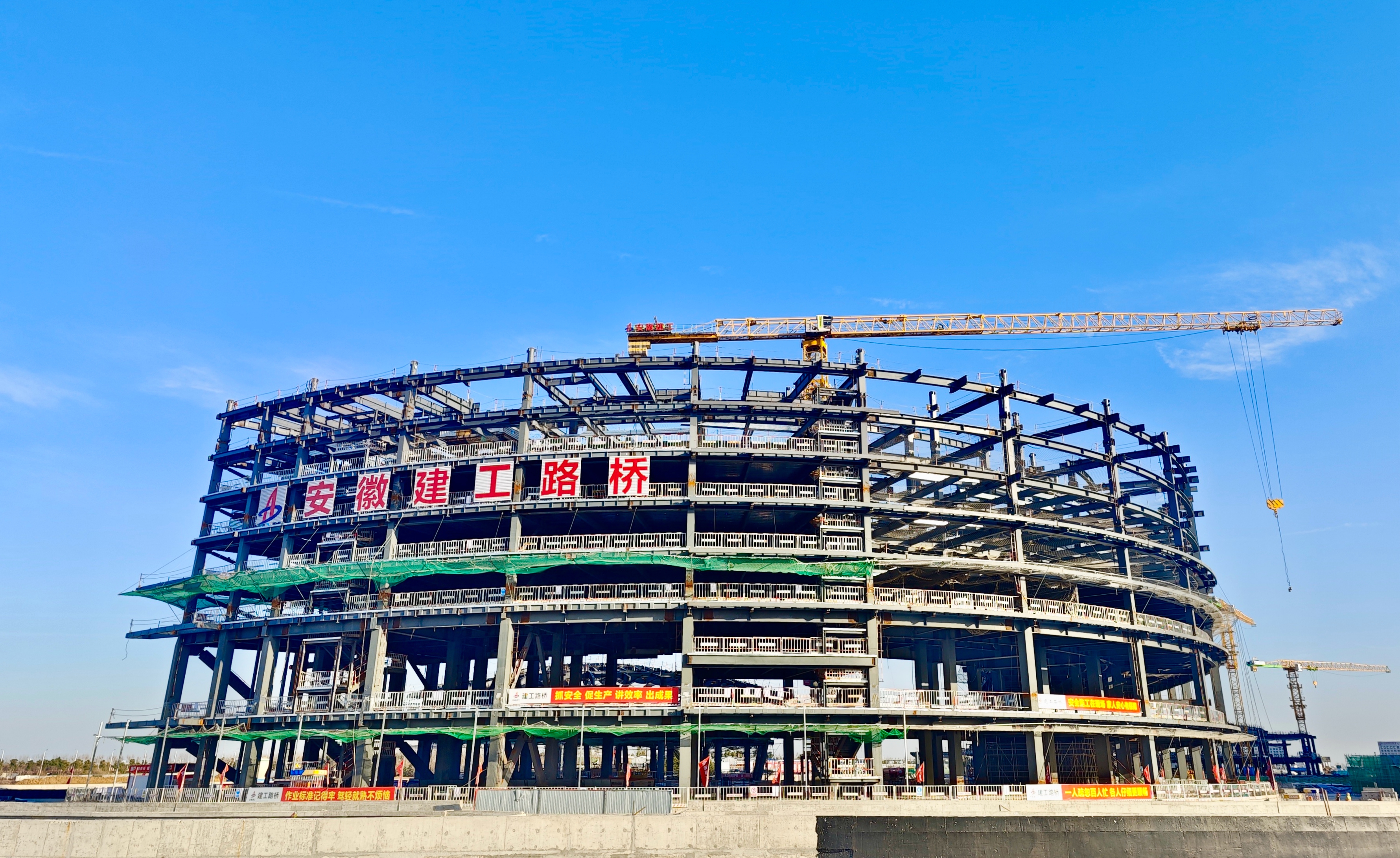 合肥新橋國際機(jī)場綜合交通中心項目正全面推進(jìn)旅客過夜用房鋼結(jié)構(gòu)安裝施工。